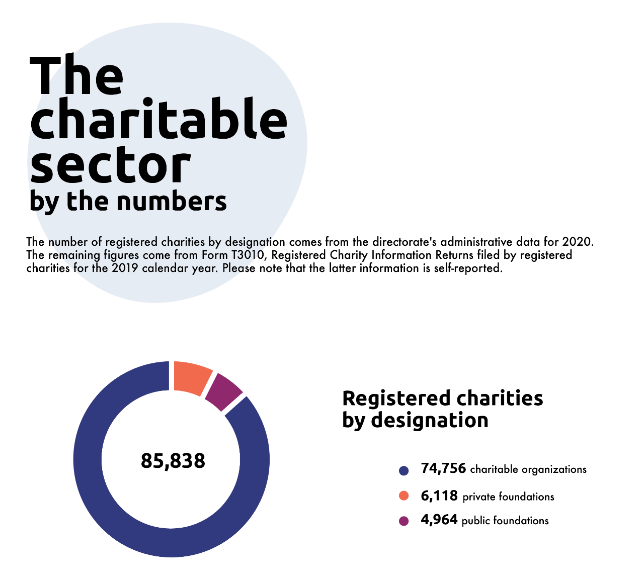Update your data! In theReport on the Charities Program, 2020-2021, the Canada Revenue Agency’s Charities Directorate provides a current snapshot of the sector, including the impact of the Covid-19 pandemic.